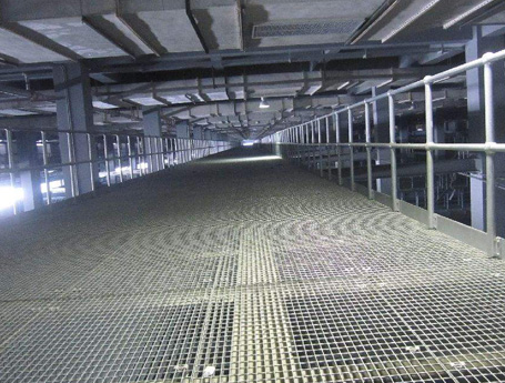 2、钢格板作为吊顶使用,具有外形美观、经久耐用:热浸锌表面处理使其具有相当好的防腐能力,表面光泽美观。