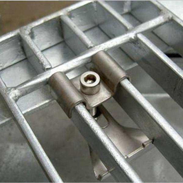 钢格板固定方法:可选用焊接和安装夹紧固两种方法。焊接的优点是固定,不会松脱;安装夹的优点是不破坏热浸锌层及拆卸方便。不用下夹,直接将螺钉头倒焊在梁上,保证钢格板不会因安装夹松脱而从梁上滑落。