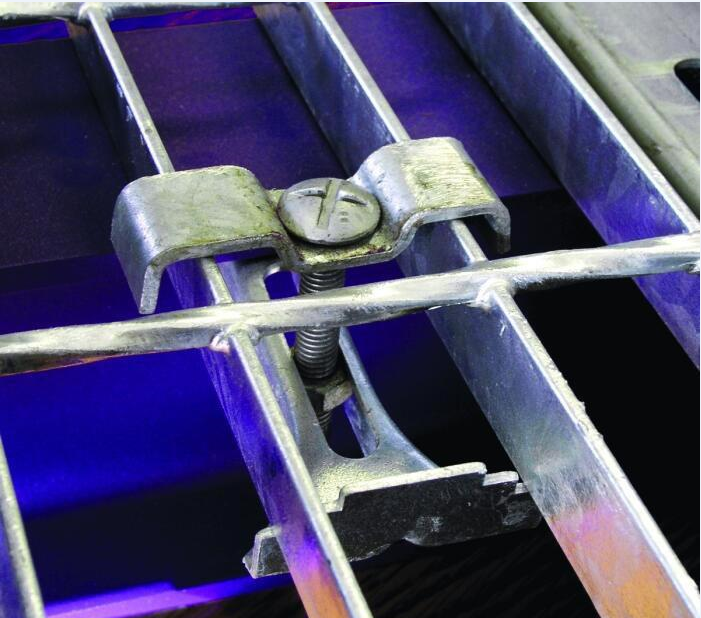 焊接固定适用于不需拆卸的部位,如设备周围平台,而采用安装夹具有不破坏锌层及拆卸方便的特点。安装夹适用于各种系列的钢格板,有上夹、下夹和M8或M10内六角圆柱头螺栓组成。焊接固定的方法是:在钢格板每个角一根扁钢上,焊缝不小于20mm,高不小于3mm的角焊。采用安装夹固定的方法:每块板采用四套安装夹,对跨距较大的板块较好在可利用的支撑物上多安装几个。