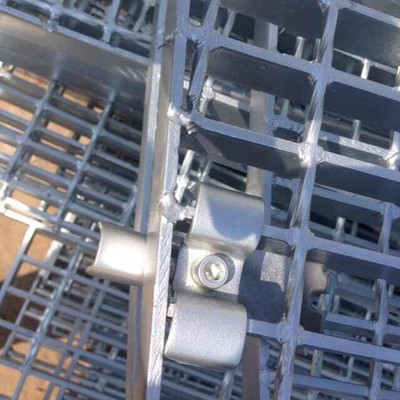 钢格板固定方法:可选用焊接和安装夹紧固两种方法。焊接的优点是固定,不会松脱;安装夹的优点是不破坏热浸锌层及拆卸方便。不用下夹,直接将螺钉头倒焊在梁上,保证钢格板不会因安装夹松脱而从梁上滑落。